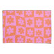 Esto es adorables flores retro de colores a cuadros y retorcidas en tableros de ajedrez rosados y naranjas. Es una gran funda de almohada para dormitorio