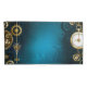 fondo turquesa, texturado, de vapor punk con bronce y oro, llave de plata y reloj. Estilo Steampunk.