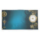 fondo turquesa, texturado, de vapor punk con bronce y oro, llave de plata y reloj. Estilo Steampunk.