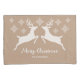 El diseño original de la silueta de Destei de dos ciervos frente a otros junto con algunos copos de nieve decorativos. El color de fondo es beige. También hay dos áreas de texto personalizables.