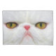 Mascotas divertidos. Gato blanco con los ojos amarillos.