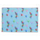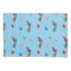 Funda de almohada linda con los globos rojos, azules, verdes, púrpuras y rosados. Mostrado aquí en azules cielos. Para hacer juego su personalizar del tecleo de la decoración que entonces corrige para cambiar el fondo a un color de su opción.