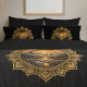 A radiant celestial sunset framed in an ornate golden mandala, where mountains, river, sun, and moon meet in perfect balance. This design blends boho spirituality with bold nature imagery. It’s a statement piece for anyone who loves mountain life, golden hour and night skies. Celebrate peace, strength, and love for the great outdoors with this cozy black pillowcase. | The matching duvet cover is available in my store. This listing is for the pillow case only.