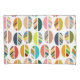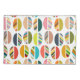 Esta almohada tiene un diseño moderno de mediados de siglo de mitades ovales, algunas sólidas y algunas rayadas, en un campo de blanco.