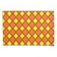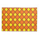 Esta funda de almohada tiene un diseño de los años 70 de diamantes de color amarillo sólido dentro de los contornos de diamante marrón en un campo de naranja.