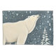 Un divertido diseño artístico con un majestuoso oso Oso Polar mirando hacia el cielo nocturno ártico, mientras grandes copos de nieve blancos y esponjosos caen a su alrededor.