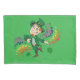 Funda de almohada con el Ilustracion de un lindo y feliz leprechaun sonriente y bailando, lleva puesto un traje verde y un sombrero top y está rodeado de salpicaduras de color arcoiris Un diseño perfecto para celebrar el Día de San Patricio, dibujado por Radka2D