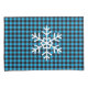 Pillowcase is shown in a black and blue buffalo plaid snowflake print.