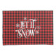 Pillowcase is shown in a black and red buffalo plaid let it snow print.