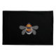 Este diseño contemporáneo presenta un patrón geométrico de colmena dorada, abejorros y un fondo de color negro.