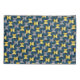 Esta funda de almohada tiene un diseño moderno de mediados de siglo de ovarios en la marina con semicírculos en tonos amarillos y grises en ellos sobre un campo de negro.