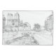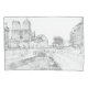 Ilustracion de Notre Dame de París, en forma de boceto, y barco en el río Sena, París, Francia