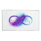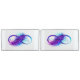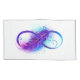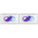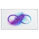Símbolo infinito con una hermosa pluma pintada de color violeta y azul brillante sobre fondo blanco.