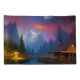 bonita cabaña de troncos enclavada en una cala aislada rodeada de montañas, bañada por la luz de la luna. Arte generado por Ai por minx267