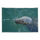Una foca gris nada con gracia a través de las tranquilas aguas del mar, con una cabeza que rompe claramente la superficie. Las ondas se esparcen hacia afuera, creando patrones suaves alrededor de ella. Fotos cercanas tomadas en el mercado de pescado Chatham, famoso por el marisco fresco y fotos de focas en los muelles. Chatham, MAMÁES