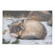 Una manada de lobos durmiendo en el suelo cubierto de nieve. El líder del lobo tiene los ojos abiertos y te está mirando