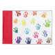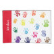 Colores brillantes y divertidos de pequeñas huellas. Borde rojo en el lado de apertura con letras blancas de tu especial.