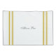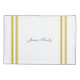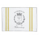 Una cresta vintage, francesa, grabada en forma de cresta de la familia y rayas de cinta adhesivas amarillas de mostaza son la adición perfecta a la decoración de su casa de campo francesa en este conjunto de fundas de almohadas personalizados. No olvide el toque final de personalización con su monograma y apellido en la parte delantera y sus nombres individuales en la parte posterior de cada funda de almohada.