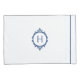 Funda de almohadas: Descanse con estilo en nuestra funda de almohadas mostrando un refinado monograma azul y blanco. Está fabricado con tejidos de primera calidad y ofrece confort y lujo, además de añadir un toque personalizado a la decoración de su habitación.