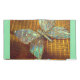 Fotografía en color de una mariposa iridiscente con alambre o falsedad.