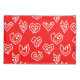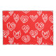 Esta funda de almohada tiene un diseño moderno de mediados de siglo de San Valentín de máscaras blancas dispersas en un campo de color rojo.