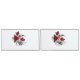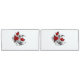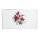 Contorno, luna de media luna mecánica con engranajes, decorada con rosas rojas con tallo negro y hojas sobre fondo blanco. Steampunk