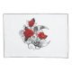 Contorno, luna de media luna mecánica con engranajes, decorada con rosas rojas con tallo negro y hojas sobre fondo blanco. Steampunk