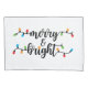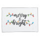 Pillowcase set is shown in white with a festive Christmas holiday Merry & Bright lights print.