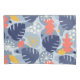 Color azul índigo. Los tonos de azul índigo lavado componen el fondo de esta impresión con acentos de azul marino, azul deno, coral vivo, ocre y crema. Es hora de verano todo el año. Nuestra moderna huella tropical abstracta presenta hojas monsteras y otras formas orgánicas. Esta huella retro es ideal para la decoración tropical, habitaciones compartidas, patios, casas de playa y más. Este diseño se presenta en varios colores. Las sombrillas de paja y edredón se dirigen a una playa de arena.