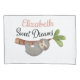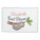 Marea de color agua adorable y linda con el nombre de un niño. Texto de nombre en monograma rosa grisáceo. La cita decorativa del estilo de escritura desea a baby 'Sweet Dreams'. Sloth's es un animal que se puede encontrar en una selva tropical. El pasa gran parte de su tiempo en sueño flojo.