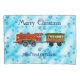 Un motor de vapor y un coche de pasajeros con el modelo alemán Marklin O, rediseñado, en torno a los años 40. Al motor se le ha dado digitalmente un nuevo esquema de color para Navidades, conservando su carácter. GText leyendo, "Feliz Navidad" también aparece. Añade tu propio texto adicional.