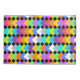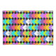 Esta funda de almohada tiene un diseño geométrico de diamantes de neón que se superponen unos a otros en un campo de negro.