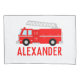 ¿A tu hijo le encantan los bomberos? La funda de almohada con el nombre del camión de bomberos diseñada por la Enchantsofisticada Design Company es perfecta para el futuro bombero o bombera en su vida. Este diseño cuenta con un camión de bomberos rojo brillante con una escalera. Personaliza tu elección de nombre en un texto rojo brillante.