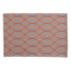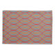Esta funda de almohada tiene un diseño boho de ondas naranjas y rojas sobre un campo de gris.