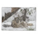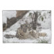 La onza curiosa juega en la nieve en un día de invierno y mira hasta el lado.