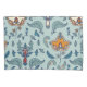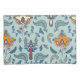 Ornate floral pattern on a pale blue background, featuring stylized orange and blue flowers and leaves. The design is symmetrical and vibrant.