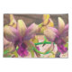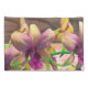 Las orquídeas están floreciendo de nuevo en el jardín, en la fotografía original de ZoeSPEAK en este juego de almohadas. Las flores, que emergen de un tallo verde curvado, tienen centros morados que se mezclan en amarillo en las puntas de los pétalos. El fondo de la madera natural da forma a las formas y los colores escultóricos.