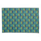 Esta funda de almohada presenta un diseño moderno de ovalos en verde azulado de semicírculos en verde y marina en un campo de turquesa.