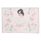 Elegante personalizado con un hermoso ilustracion de un adorable y adorable chica rubio con elegante bonito dorado y azul y flores en su pelo sobre un fondo rosado de moda con un elegante borde floral. Hermoso, caprichoso, moderno, glamuroso, femenino, divertido, de moda.