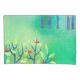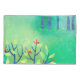 Moderno paisaje verde y abstracto con algunos árboles distantes, un erizo y pájaros. Arte original de Nic Squirrell.