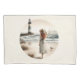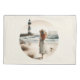 Una elegante joven vestida de blanco que recorre la orilla de arena, su gorra se inclinó contra la brisa mientras contemplaba un faro a rayas que se sostenía fuerte contra las olas. Gafas suaves enmarcan el primer plano mientras las aves marinas y un velero se deslizan por el horizonte, lo que añade un sentido de calma al paisaje costero. La suave acuarela combina el romanticismo y la serenidad, creando una atmósfera de costa atemporal inspirada en la cabaña, nostálgica y de ensueño. La IA generó obras de arte.
