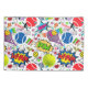 Impresionante y único patrón de tenis ecléctico con una mezcla de elementos de tenis y colores brillantes sobre fondo blanco.