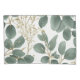 Este diseño presenta hojas de eucalipto y ramas en un fondo blanco. El diseño tiene un estilo plano, gráfico y un suave color verde y dorado. El patrón se compone de hojas y ramas dispuestas en una dirección diferente.