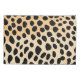 Este diseño presenta un patrón de impresión de leopardo en un fondo naranja claro. El patrón se compone de manchas negras que varían en tamaño y forma, creando un contraste con el color naranja. Este diseño es perfecto para todo aquel que ame las huellas de animales y quiera