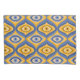 Psicodelic funda de almohada con un extraño patrón de ojos con colores azul índigo y amarillo panieves. Este divertido patrón ecléctico peculiar se asemeja al estilo retro moderno de mediados de siglo por sus formas geométricas.
