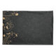 Este artículo presenta un diseño de estilo damasco en negro con ornamentación dorada.