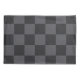 Esta funda de almohada oscura presenta un patrón geométrico monocromo, famoso tablero de ajedrez croata en negro y gris.