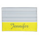 Patrón rayado moderno blanco, azul y amarillo con nombre personalizado