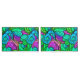 Patrón de aspecto vintage en los girasoles multicolores. Los colores son azul, verde, verde azulado, violeta, rosa y coral con negro.