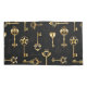 Patrón incomparable de llaves antiguas, doradas y de silueta sobre fondo negro.